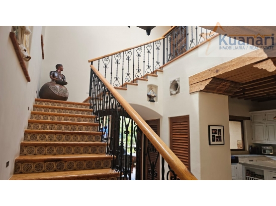 Cocina con electrodomésticos de grado comercial, juego de comedor Equipal para 8 personas, encimeras de granito, campana de acero inoxidable y herrajes importados de Restoration Hardware. Sala con sofá de cuero 100% y chimenea de cantera. Patio con fuente de cantera y azulejos de Puebla, escultura de mariposa tallada y huerto trasero con fogata, horno de leña y árboles de aguacate. Lavandería con lavadora/secadora y oficina con chimenea de gas. Puntos Clave de Venta Arquitectura tradicional patzcuarense auténtica, muebles artesanales, confort de lujo con tinas de hidromasaje y cortinas blackout, amenidades modernas con Wi-Fi Starlink y plomería importada, lista para habitar y se vende completamente amueblada (excepto exclusiones).